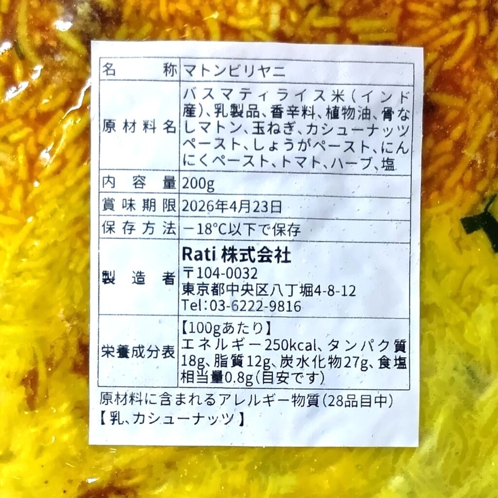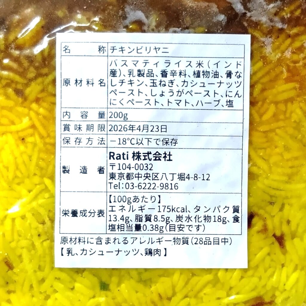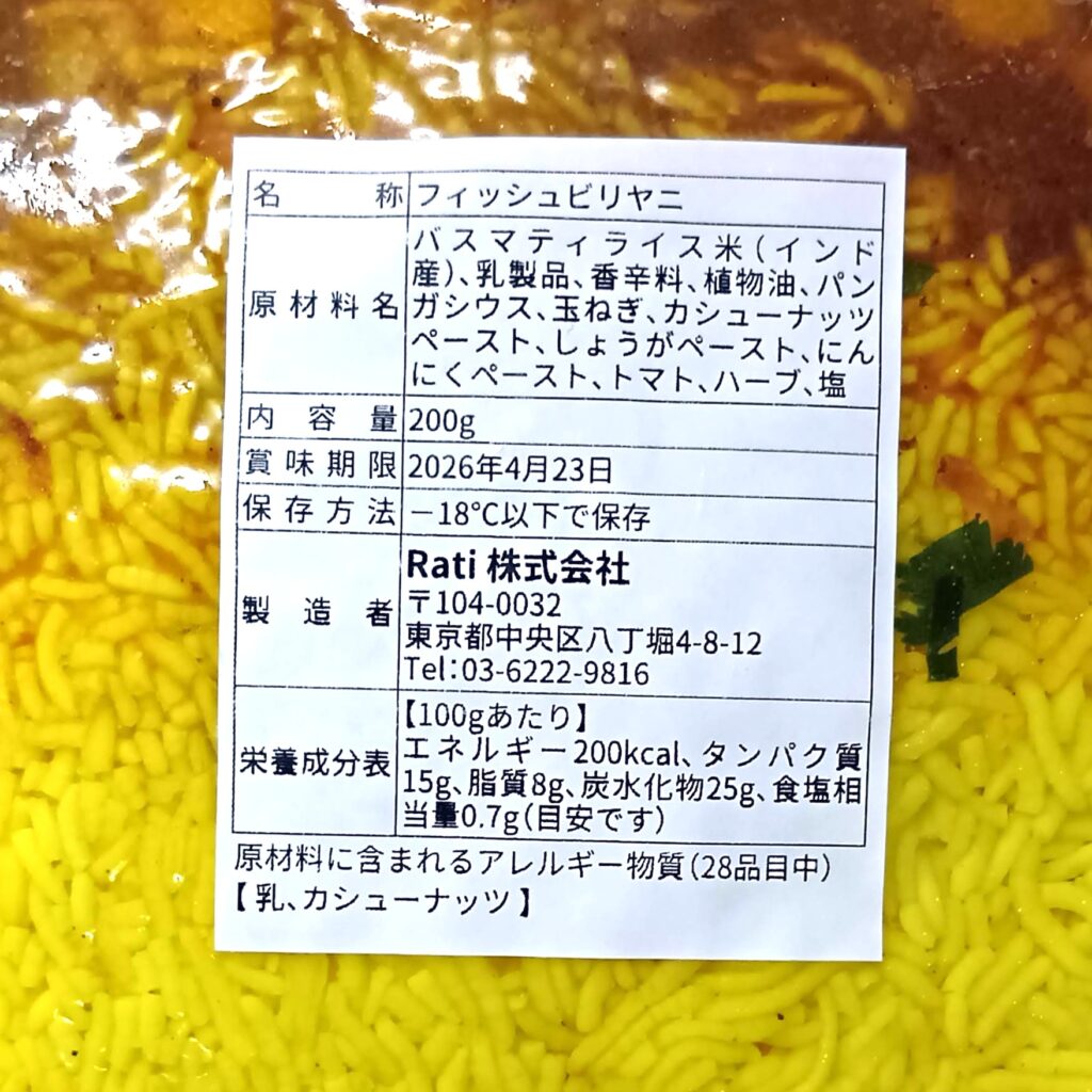 マトン・チキン・フィッシュの3種類のビリヤニが、それぞれ200gずつ入っています。