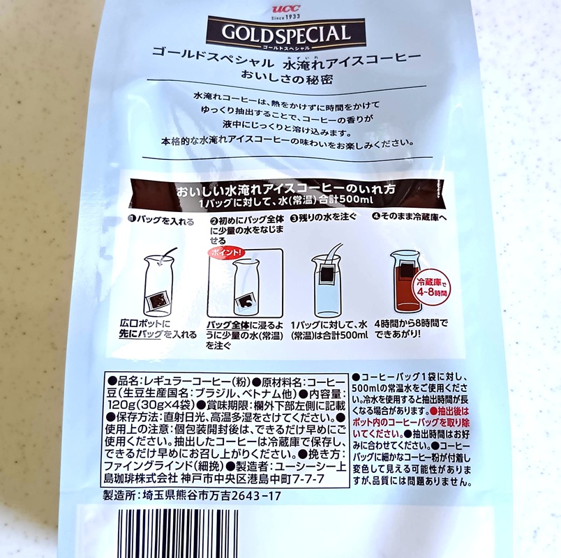ゴールドスペシャル コーヒーバッグ 水淹れアイスコーヒー 120g(30g×4袋) 578円(税込)(実売価格)