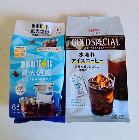 今回はドトールとUCCの水出し(水淹れ)コーヒーを飲み比べてみました。