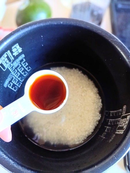 私はいつもこうやって、液体調味料+水の量を1合に合わせてます。