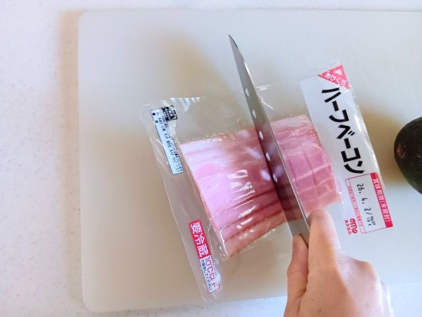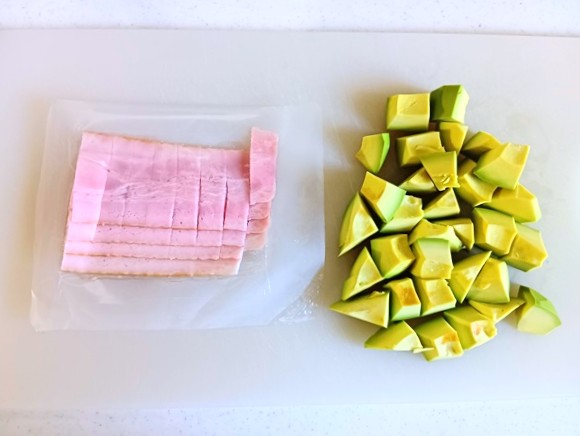 「加熱するので固めのアボカドでも大丈夫です。固めを選ぶとハズレも少ない。」